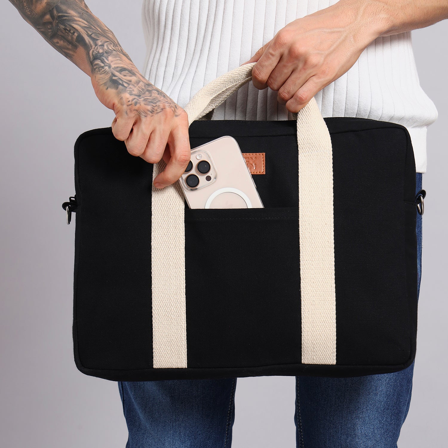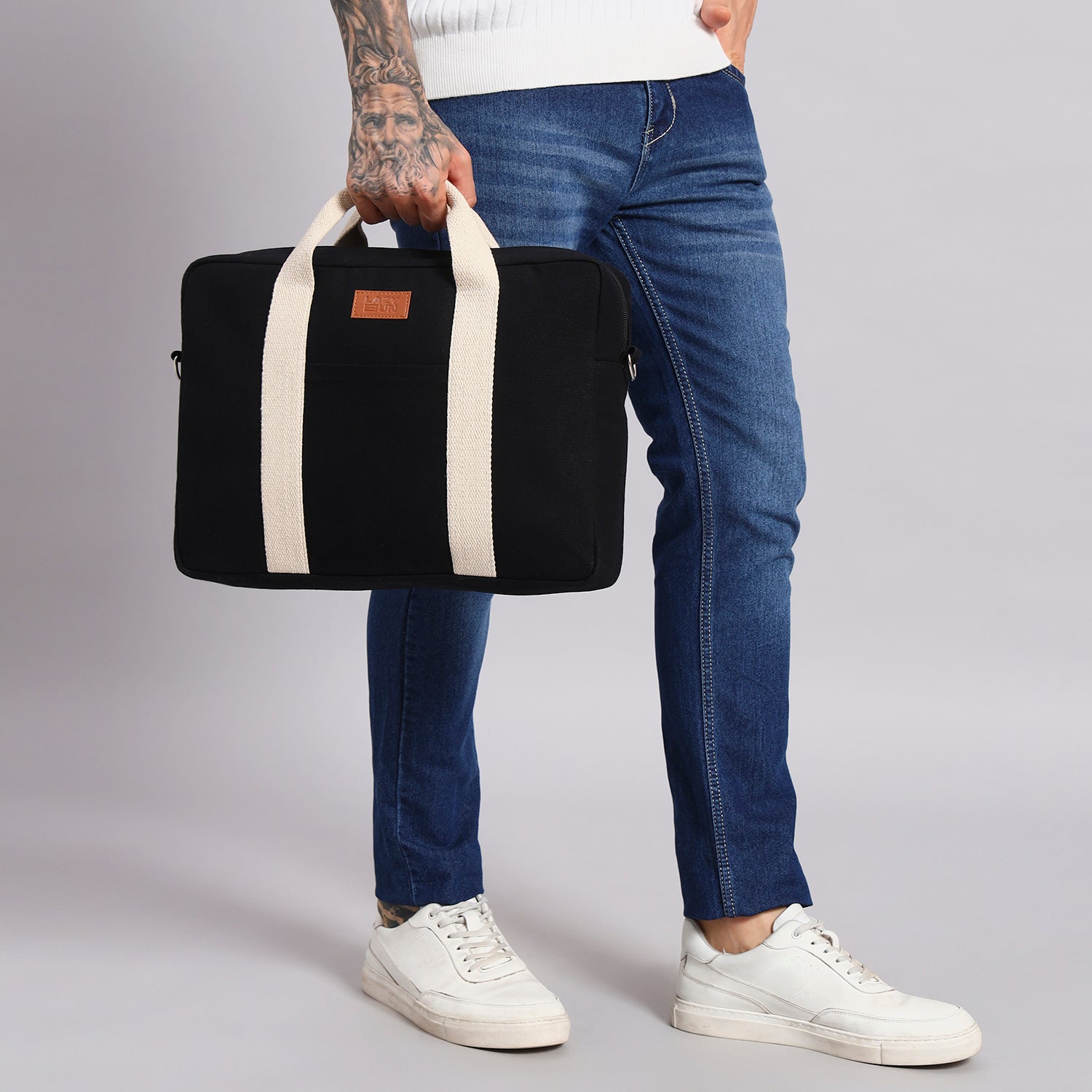 Black Business Bag, is perfectly blend with simplicity. It is made from cotton canvas material, with adjustable straps with space of 12” x 16” x 4” design. It is unisex. This this sleek bag is your ideal companion for office work and business trip . Carry it with style.