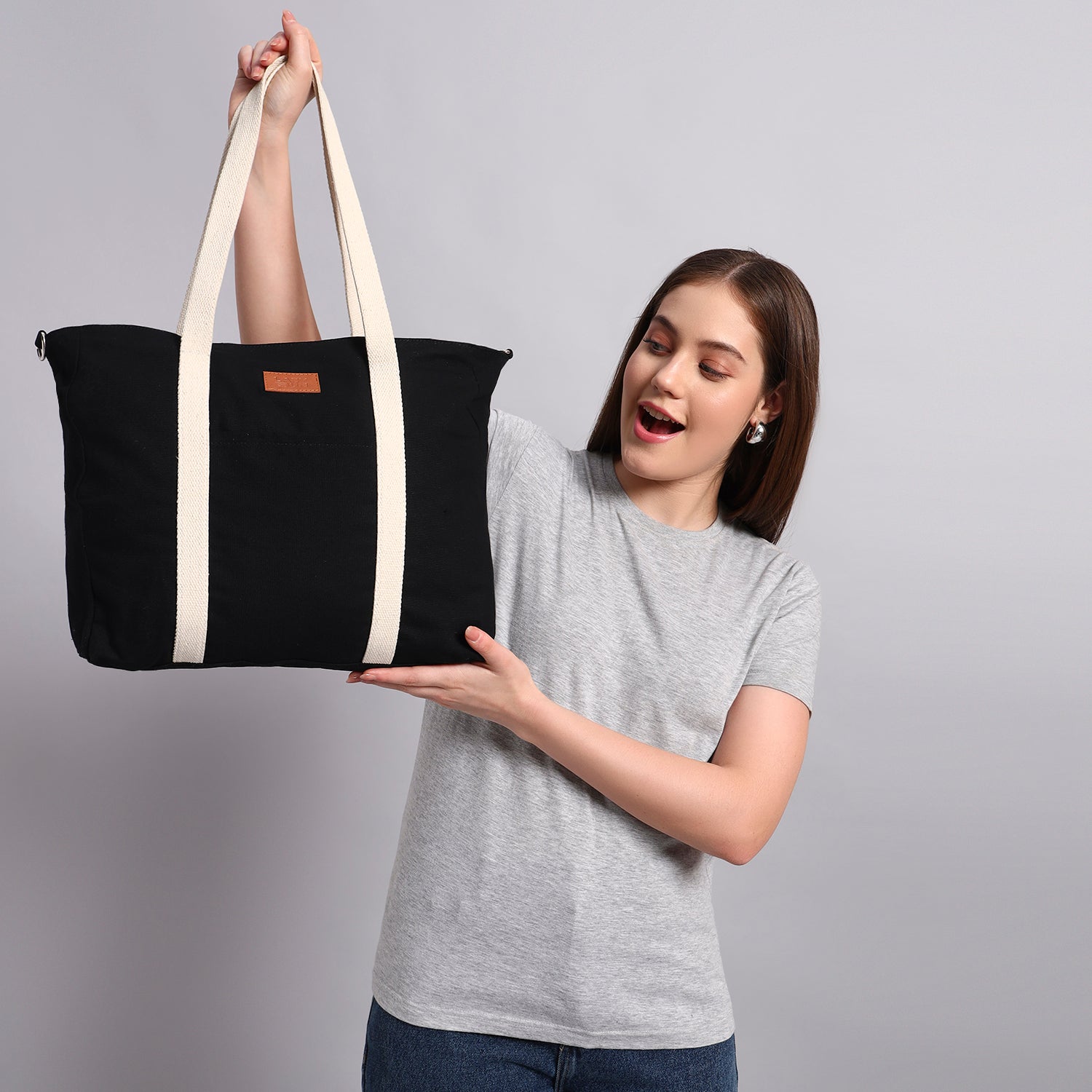 Black Tote Bag, is perfectly blend with simplicity. It is made from cotton canvas material, with adjustable straps with space of 14.5” x 15.5” x 3.5” design. It is unisex. This this sleek bag is your ideal companion for office work, business trip or casual outings . Carry it with style.