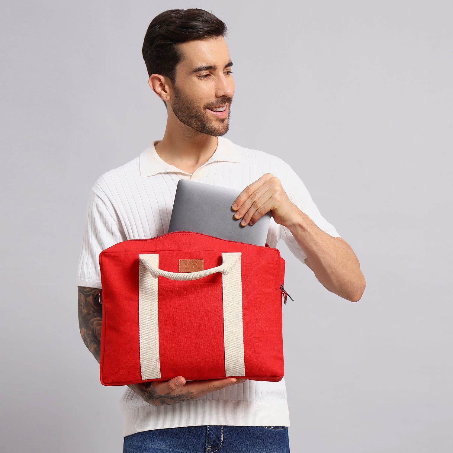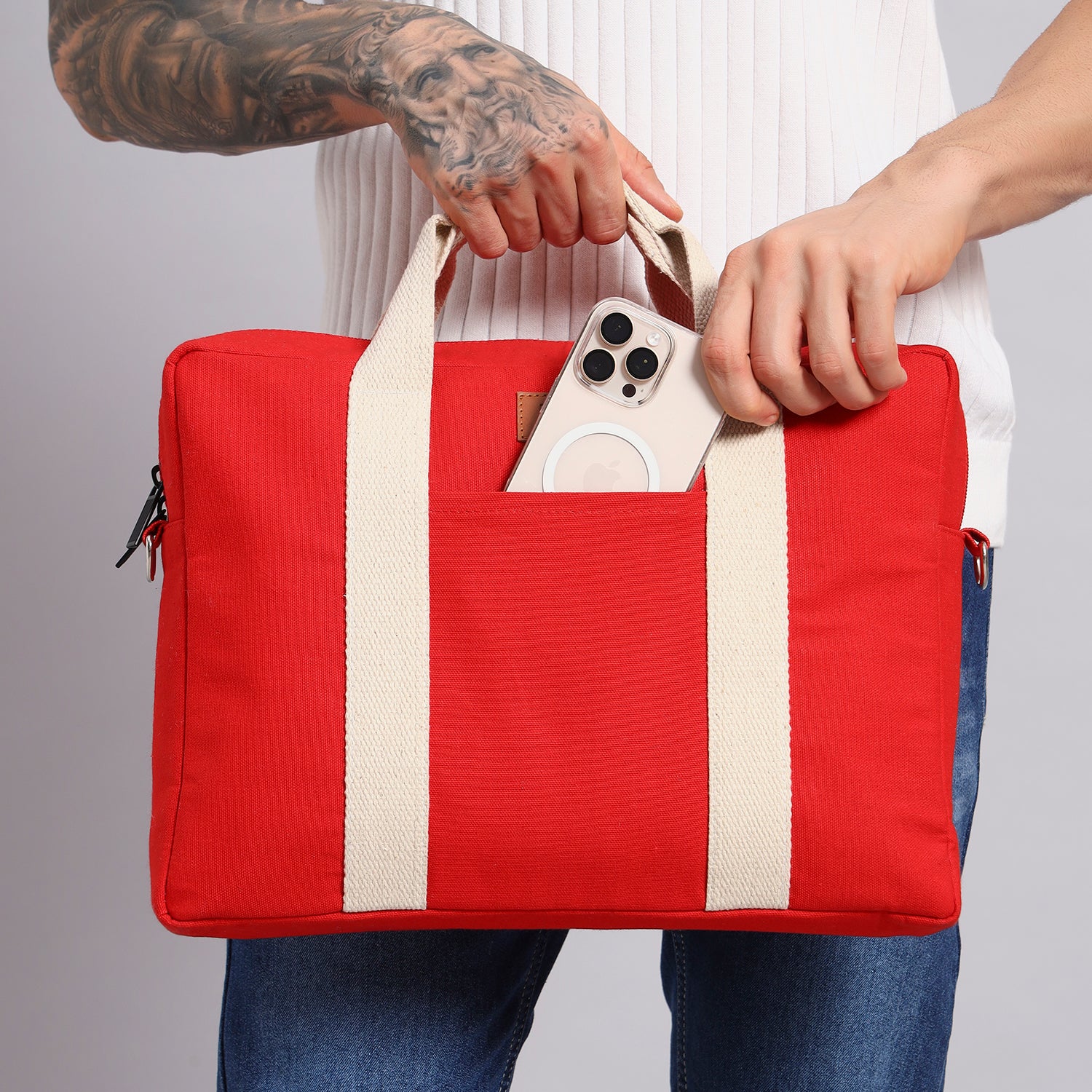 Red Business Bag, is perfectly blend with simplicity. It is made from cotton canvas material, with adjustable straps with space of 12” x 16” x 4” design. It is unisex. This this sleek bag is your ideal companion for office work and business trip . Carry it with style.