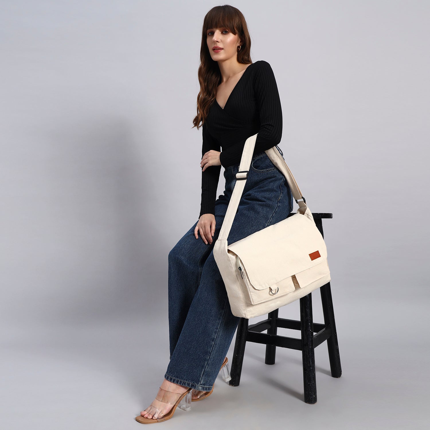 White Letter Bag, is perfectly blend with simplicity. It is made from cotton canvas material, with adjustable straps with space ofΒ 12β x 14.5β x 4β design. It is unisex and washable too. This this sleek black bag is your ideal companion for work, school, or casual outings. Carry it with style.